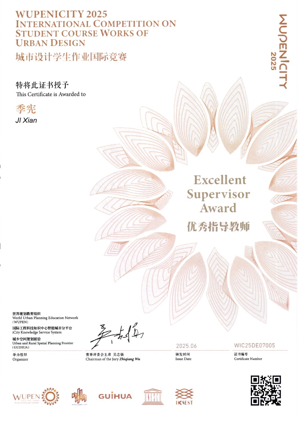 2025 WUPENiCity学生作业国际竞赛优秀指导教师
